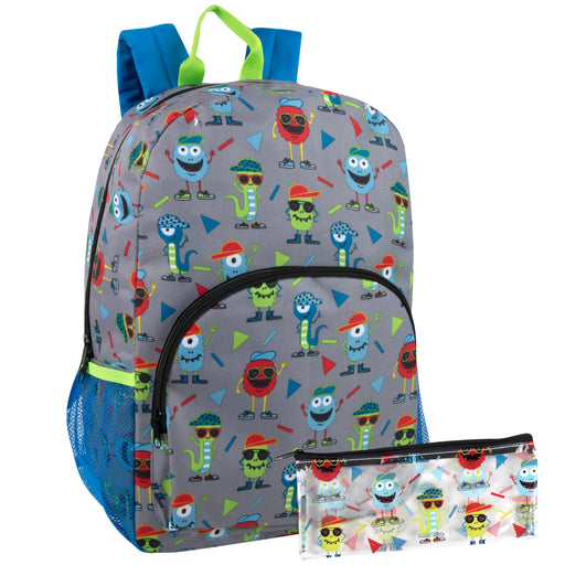 43cm Printed Backpack 20L Capacity with Pencil Case Set - Monsters Pattern